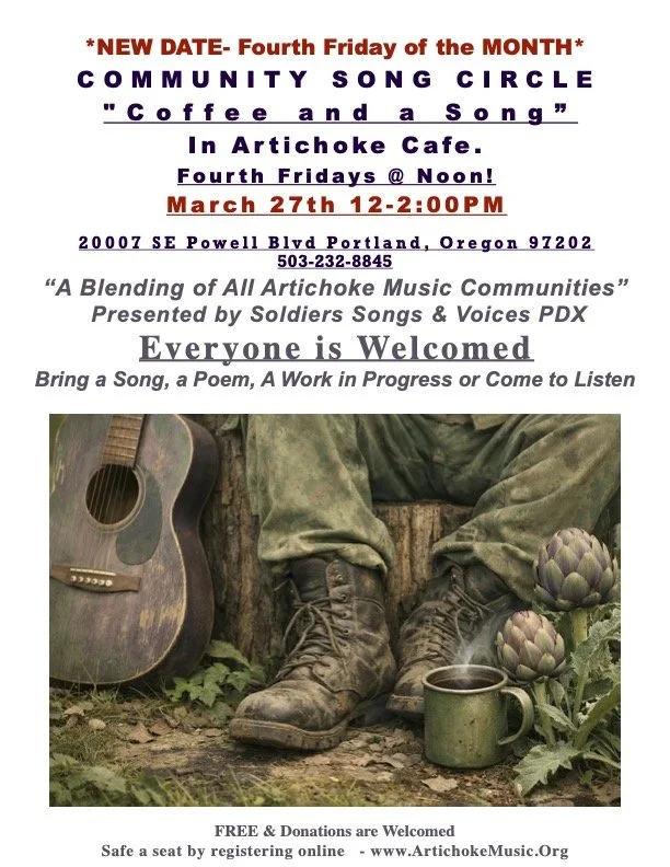 We'll be at Artichoke Community Music on March 15 and on Zoom on March 22 and 29.